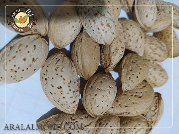 پوست چوبی بادام کاغذی بسیار نازک است و به راحتی با فشار انگشت شکسته می شود.